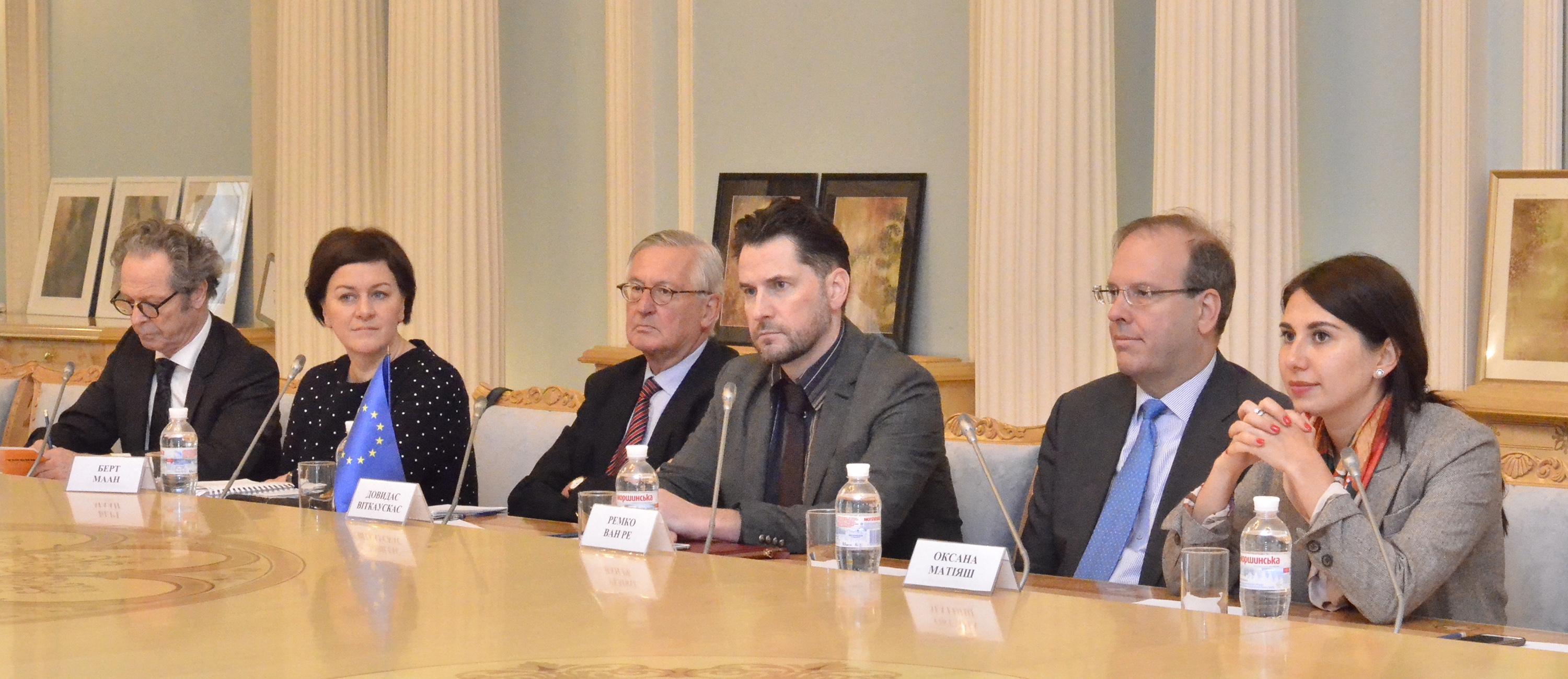 Делегацію представляли міжнародні експерти, які залучалися до надання експертизи в контексті реформи процесуального законодавства в Україні, зокрема: адвокат, колишній суддя, колишній експерт-резидент Спільної програми ЄС / Ради Європи щодо зміцнення судової влади в Україні та Туреччині Берт Маан (Нідерланди); адвокат, викладач Паризького Університету Жан Лагадек (Франція); професор права Маастрихтського Університету Ремко Ван Рі (Нідерланди); директор Національної судової адміністрації (Литва), експерт проекту Реда Молієне (Литва); національний експерт Проекту «Підтримка реформ з верховенства права в Україні (ПРАВО)» Оксана Матіяш.